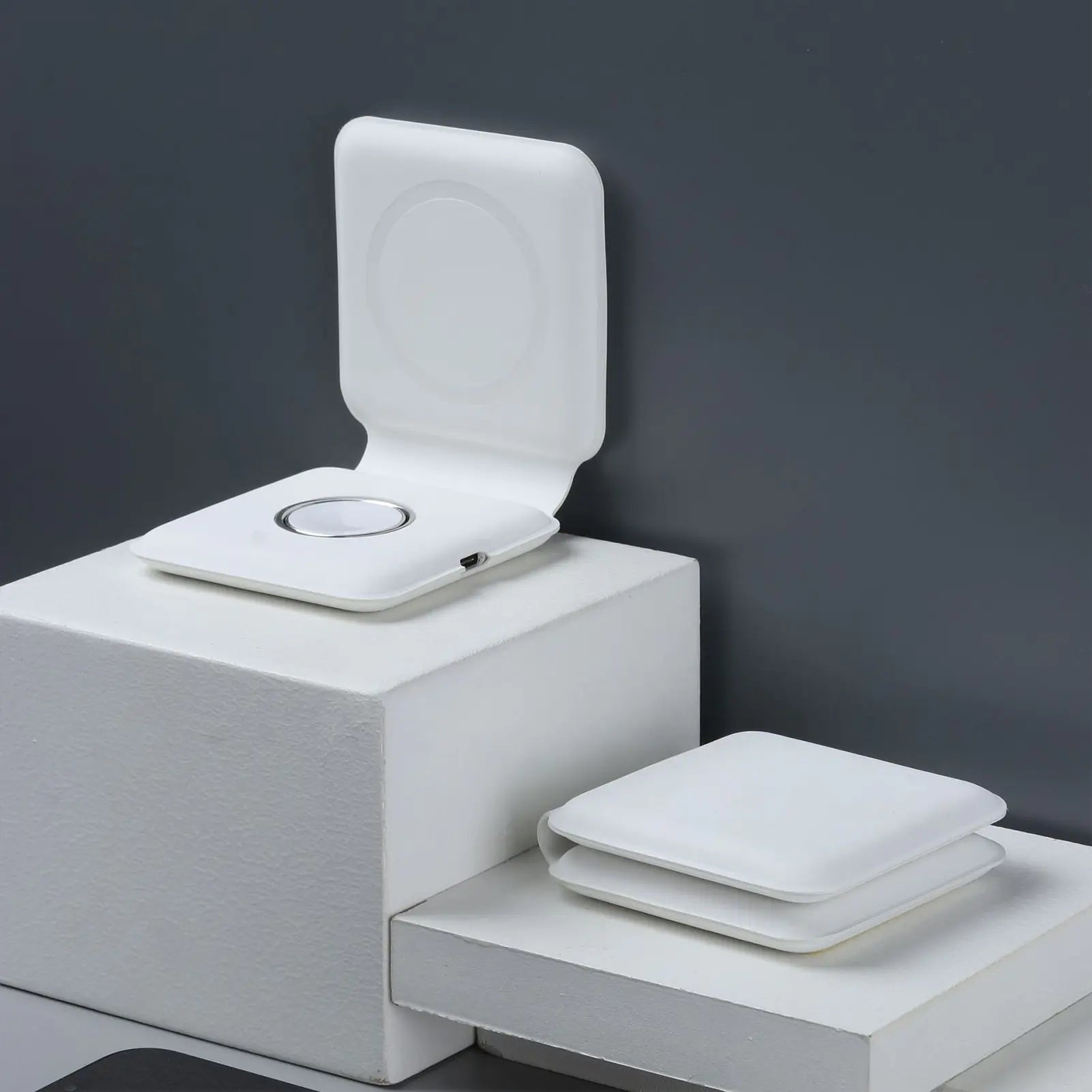 This dock has a pocket-sized design that won’t take up a lot of space, making it perfect for homes, offices and on the go! Our portable foldable wireless charger is made from fireproof ABS material for the utmost safety and comes with superior coil calibration for precise charging power delivery. Its easily set up due to its simple magnetic alignment without needing to fiddle around with cables or wires. With its sleek design and easy maintenance it's sure fit right into everyone’s home or office lifestyleSpecifications:Name: Folding Magnetic Wireless ChargerColors: white, blackMaterial: fireproof ABSInput: 12V/2A 9V/2AOutput: 15W(maximum)Interface: type-cSize: about 16.5*7.5*1cm/6.50*2.95*0.39inchPacking List:Folding 3-in-1 Wireless Charger*1Charging Cable*1 Instruction Manual*1Note:1. Due to the problems of lighting effects and shooting angles, there will be certain tolerances in the product, please understand.2. Due to manual measurement, the product has some size tolerance.